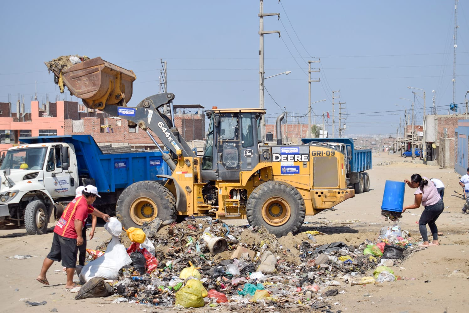 La jornada de intervención en Alto Trujillo también contempla el inicio de acciones de limpieza en diversos barrios de dicha comunidad. Durante el primer día y con ayuda de maquinaria del GORE La Libertad, se llegó a eliminar una gran cantidad de desperdicios que estaban almacenados frente a la I.E Warma Kuyay poniendo en peligro la salud de muchos estudiantes.