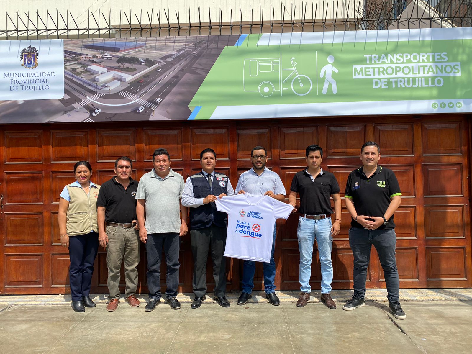 Por indicaciones del gobernador regional Ing. César Acuña, se fortalecerá la lucha frontal y constante contra el dengue. Por ello, el funcionario se reunió con Vicente Liñan, presidente de CERTRULL (microbús); Raúl Muñoz, presidente de CORETRALIB (combis), Romeo Aranda Cirilo, gerente de Transportes de Trujillo y Deivis Bravo, subgerente de Seguridad Vial.