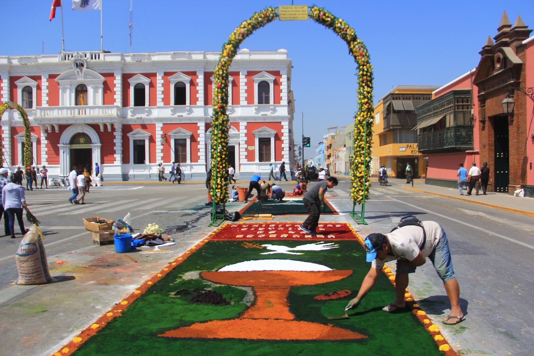 La celebración solemne de Cristo Eucaristía se realizará a partir de las 16:00 horas con la santa misa en la catedral y la procesión por alrededor de la plaza de Armas de Trujillo.