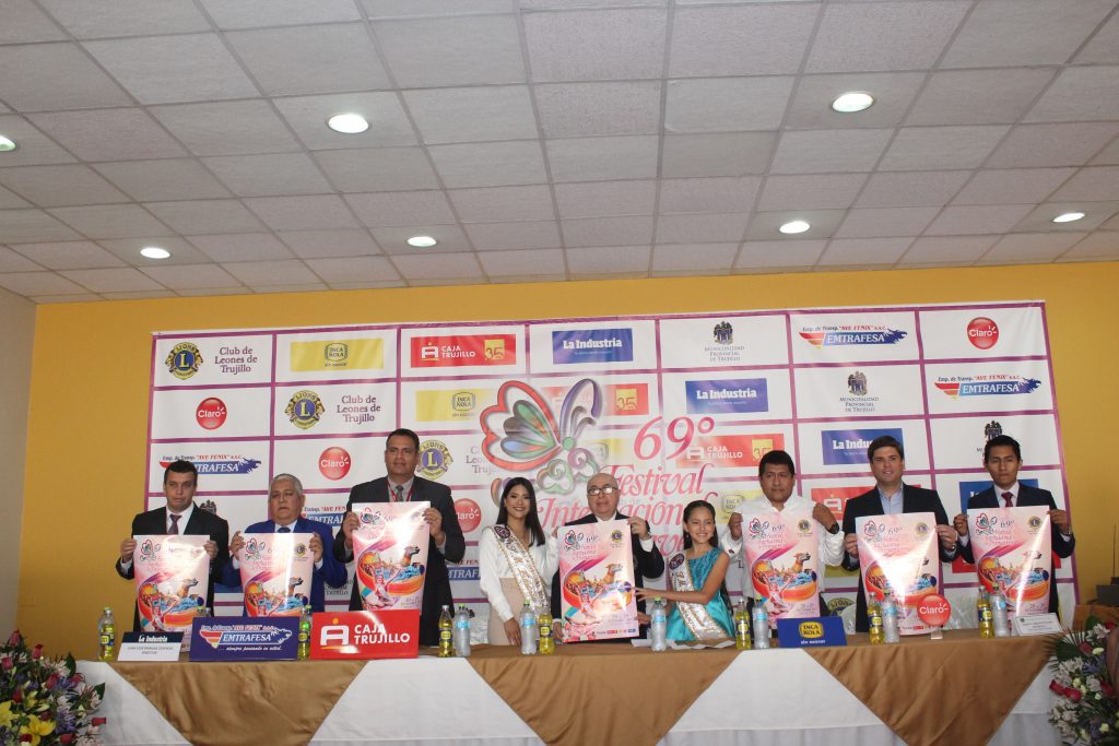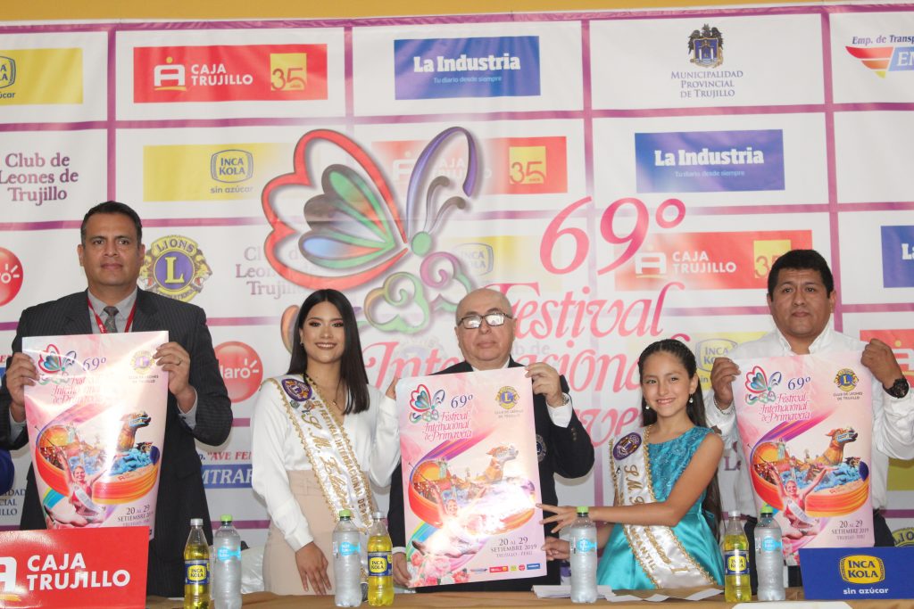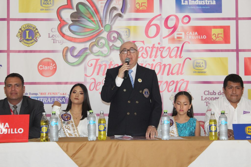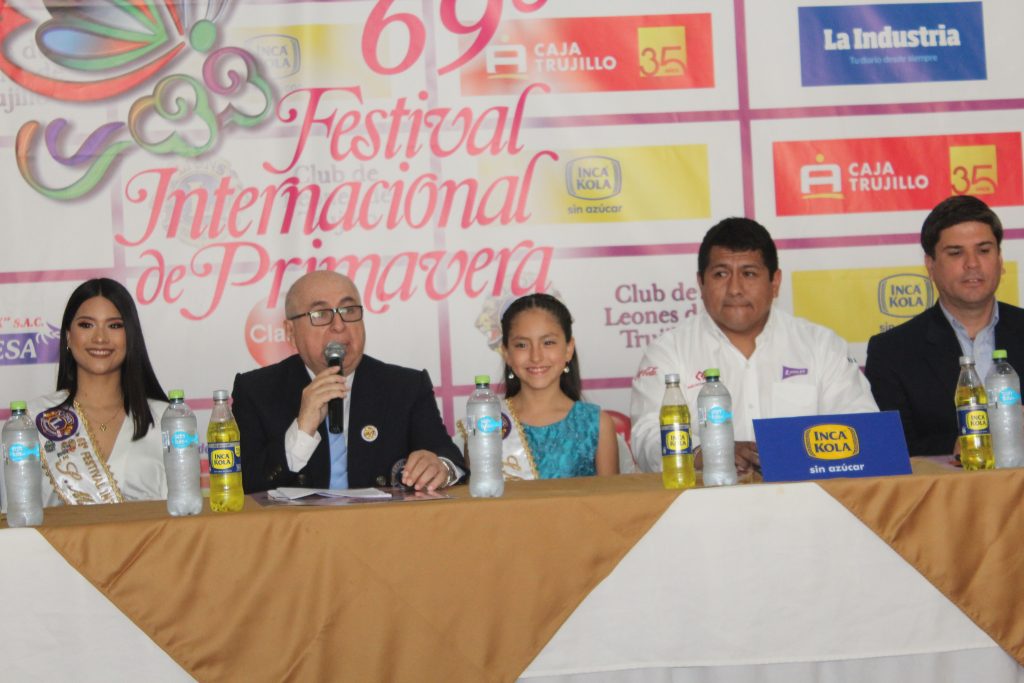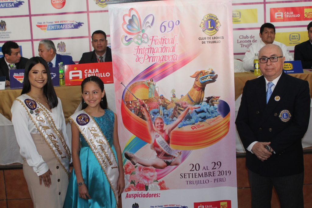 El presidente del Club de Leones de Trujillo, Carlos Pajares Armas, presentó el programa oficial de las actividades y el afiche del 69° Festival Internacional de Primavera, el cual se realizará del 20 al 29 de Setiembre. Se contará con 12 reinas extranjeras y 15 bastoneras norteamericanas.