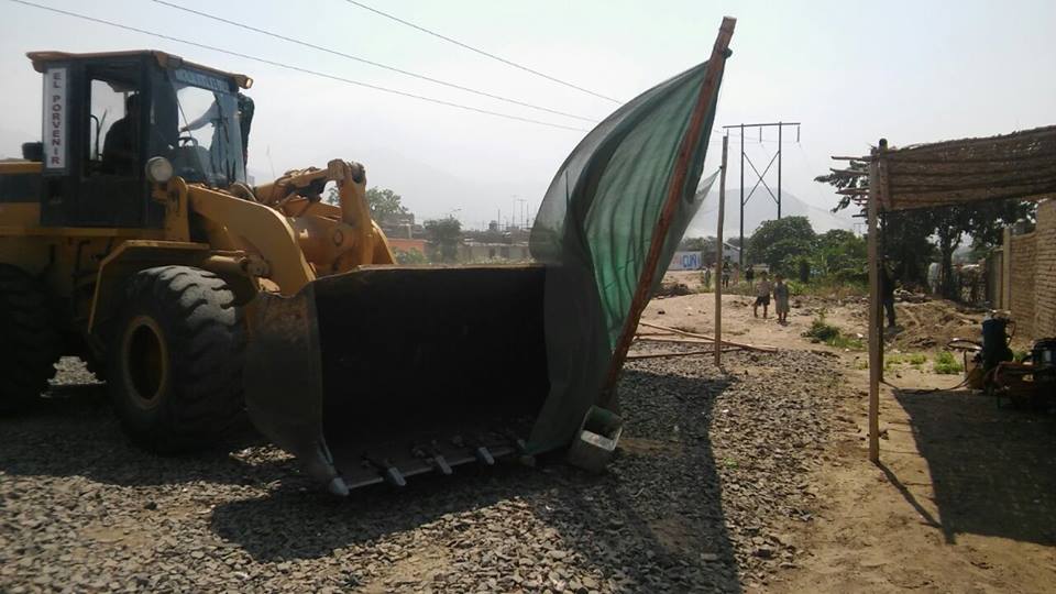 Para este desalojo se contó con maquinaria pesada ya que los informales habían construido pozos para almacenar agua, así como diferentes estructuras de material noble donde guardaban sus equipos de presión que usaban para poder lavar los carros, muchos de ellos de taxistas y conductores de colectivos que cubren la ruta entre esos dos distritos.