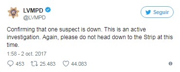 Según la última información, la policía de Las Vegas investigaba a un sospechoso que estaría alojado en una habitación del piso 32 del hotel Mandalay Bay.