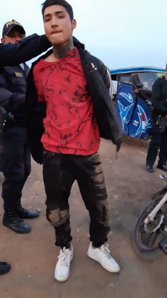 El  agraviado dio parte a la policía, quien en la jurisdicción policial, logró identificar al asaltante debido a su contextura y los tatuajes en su rostro y lo señaló como autor del hecho delictivo. Al momento se realizarle el registro personal, se le encontró munición para armamento, teléfonos celulares.