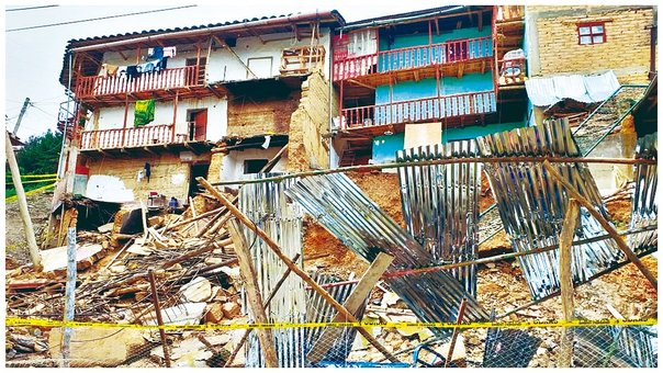 En la misma vía, a 500 metros, otros dos puntos sufrieron el colapso de la plataforma de la carretera a causa de las fuertes precipitaciones. Luego de las fuertes lluvias registradas la noche del último lunes, las viviendas construidas a base de adobe colapsaron y sepultó un taller de mecánica de motos, ocho motocicletas y otros vehículos menores. El derrumbe también afectó a tres habitaciones del predio. Sin embargo, no se registraron pérdidas humanas.