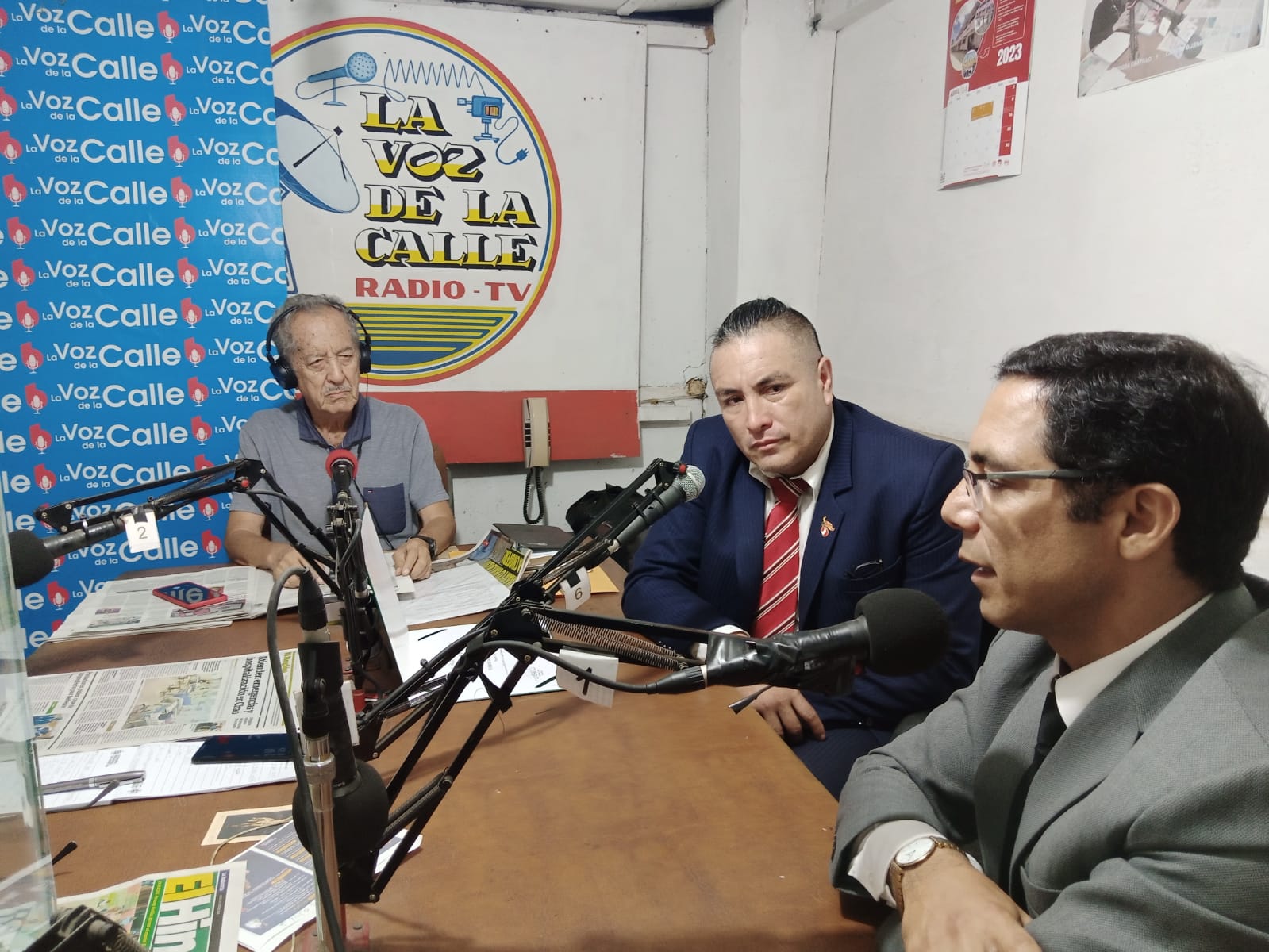 El flamante decano del Colegio de Abogados de La Libertad, Yvo Hora, visitó la cabina de Radio Libertad donde respondió las inquietudes del abogado y comentarista Sergio Bobadilla Centurión y posteriormente recibió el saludo del director del programa La Voz de la Calle, doctor Carlos Burmester Landuaro.